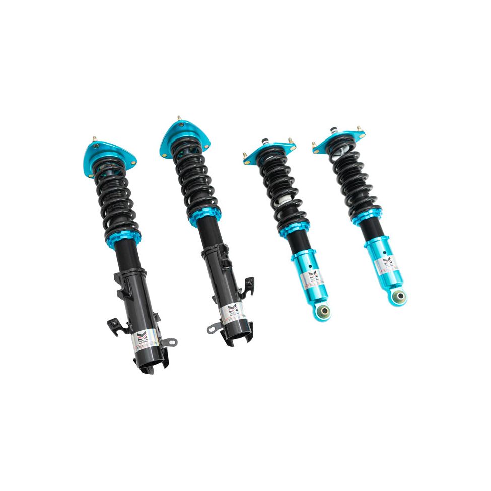 Megan Racing EZII Series Suspension Systems are fully adjustable coilover systems which do not break the bank. With it’s full length adjustable design, the vehicle’s ride height can be adjusted without affecting the shock stroke ensuring a retained ride quality at nearly any height. Monotube internal shock construction separates the oil and hi pressured Nitrogen gas chamber preventing aeration. This allows for immediate shock response and damping consistency. 15-click damping force adjustability will also allow the user to fine tune the ride stiffness and response to his or her preference.