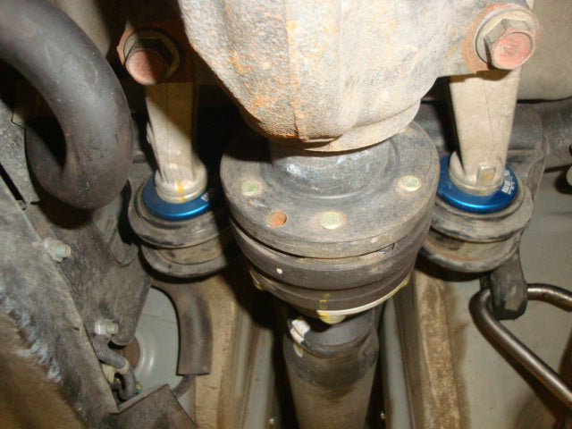 Through the years the soft rubber bushings deteriorate after constant flexing and vibration as well as being punished through weathering; this can cause them to tear and may seriously damage your engine and transmission. Megan Racing has developed Rigid Differential Mount Collars for the Honda S2000.