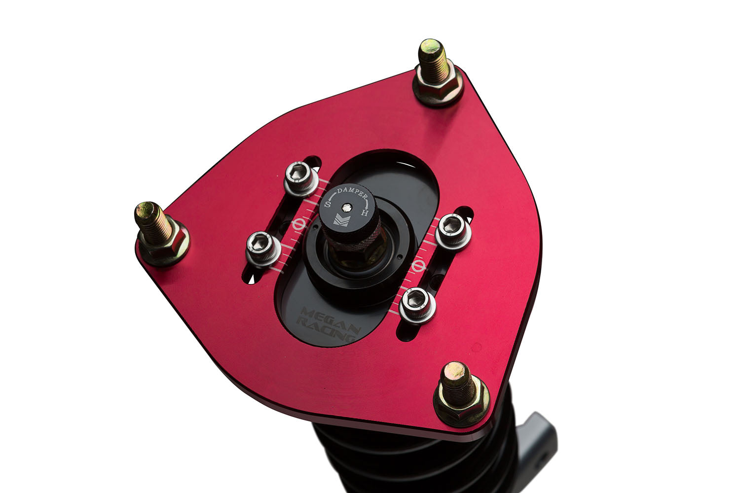 Megan Racing Coil Over Dampers are the ultimate upgrade to your track or street car. Featuring 32 levels of damper force adjustment, camber adjustable pillowball front top mounts and shock length adjustment allowing you to retain full suspension stroke and to fine tune your suspension characteristics. Compression and rebound settings are easily adjusted through a single damper adjustment knob which is built-in at the top of the damper mount for easy access. Adjustments are simple to tune according to your style of driving and desired comfort level whether you are a professional certified mechanic or an automotive enthusiast with amateur mechanical skills.