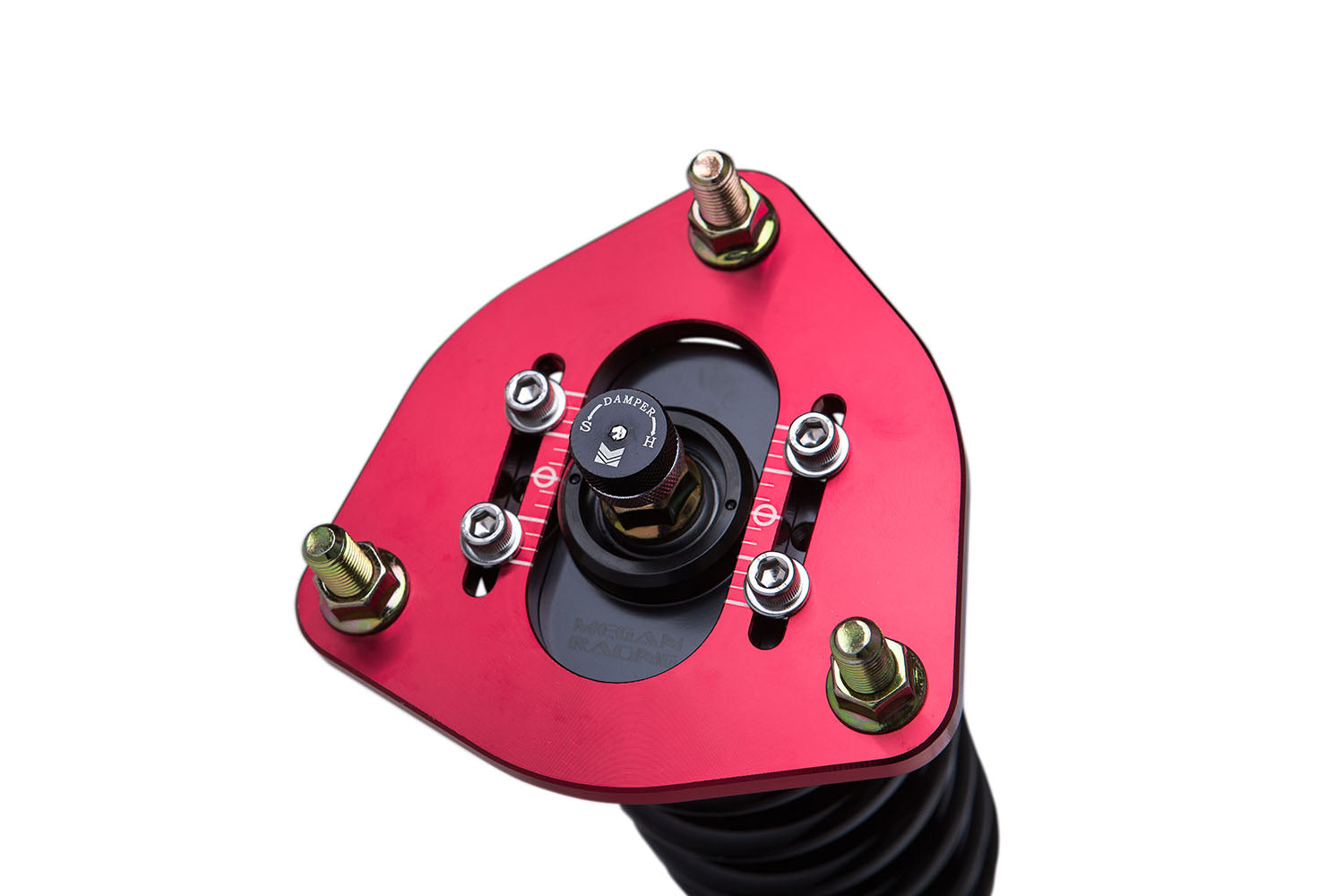 Megan Racing (Street Series) Coil Over Dampers are the ultimate upgrade to your track or street car. Featuring 32 levels of damper force adjustment, camber adjustable pillowball front top mounts and shock length adjustment allowing you to retain full suspension stroke and to fine tune your suspension characteristics. Compression and rebound settings are easily adjusted through a single damper adjustment knob which is built-in at the top of the damper mount for easy access. Adjustments are simple to tune according to your style of driving and desired comfort level whether you are a professional certified mechanic or an automotive enthusiast with amateur mechanical skills.