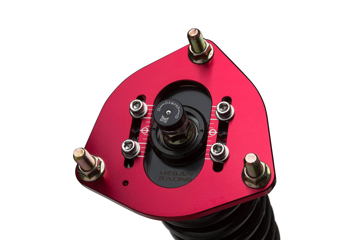Megan Racing (Street Series) Coil Over Dampers are the ultimate upgrade to your track or street car. Featuring 32 levels of damper force adjustment, camber adjustable pillowball front top mounts and shock length adjustment allowing you to retain full suspension stroke and to fine tune your suspension characteristics. Compression and rebound settings are easily adjusted through a single damper adjustment knob which is built-in at the top of the damper mount for easy access. Adjustments are simple to tune according to your style of driving and desired comfort level whether you are a professional certified mechanic or an automotive enthusiast with amateur mechanical skills.