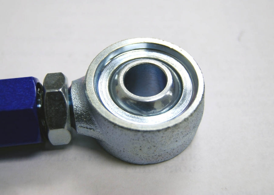 These adjustable Tie-Rod ends offer a higher angle of deviation which gives slightly more steering angle and more predictability when nearing steering-lock. The 15mm of bump-steer adjustment allows the tuner to keep the control arm and tie rod at similar angles to keep a more predictable steering characteristic in this already touchy car. This allows the driver to get a more direct feel for the car and a more predictable reaction which gives the driver more confidence.