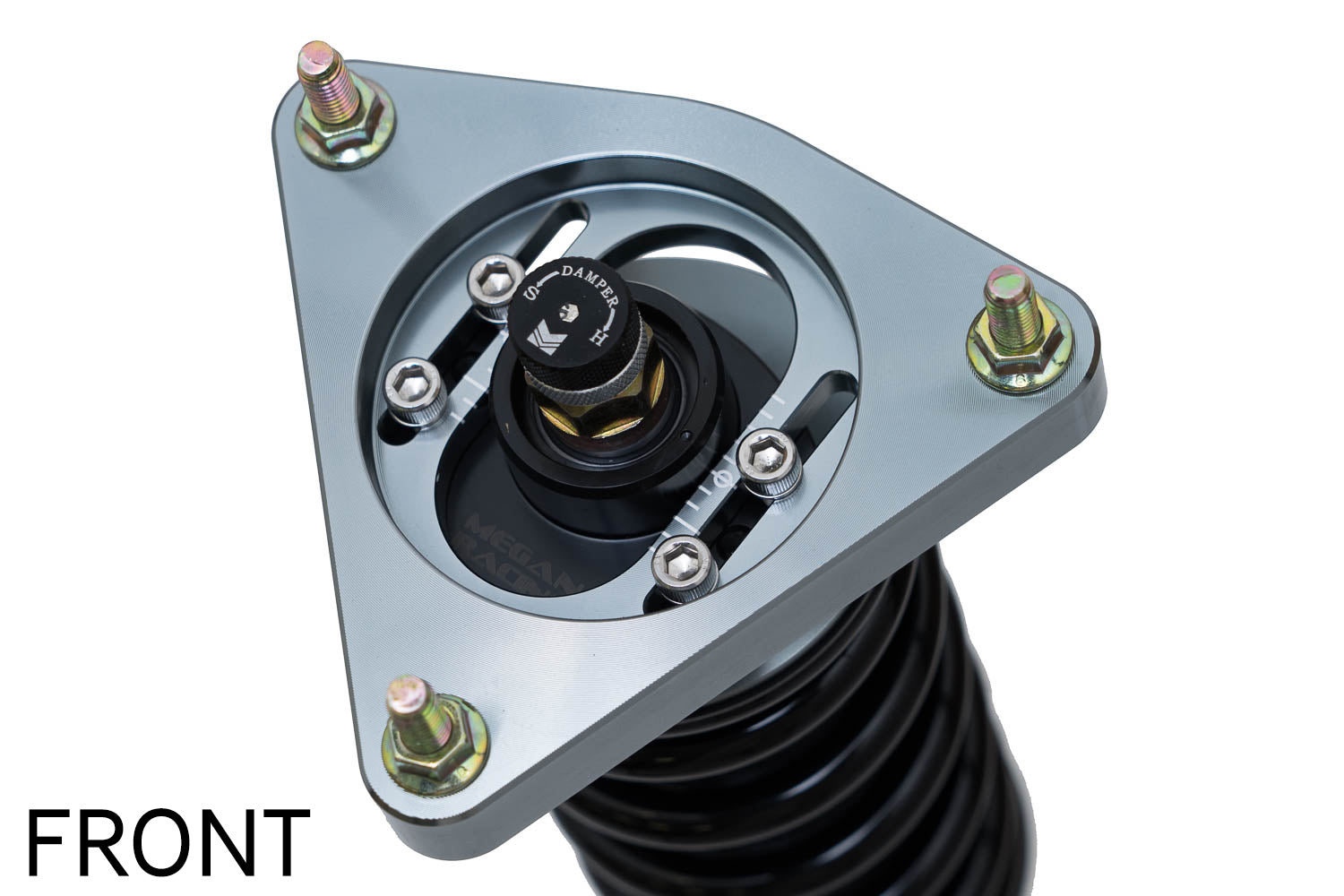 Megan Racing (Track Series) is for those who demand the absolute most in handling and performance from their vehicle, Megan Racing has developed a new series of fully adjustable Coil-Over Damper kits for limited applications. The new Track-Series Coil-over Damper Kit surely stands out above the rest with the dependability and performance that Megan Racing suspension products are known for. With a gunmetal finish for the brackets and coated springs for durability, it is apparent that the Megan Racing Track-Series dampers mean business. However, beyond their aggressive appearance stands the true essence of these Dampers. The increased spring rates, mated with more aggressively valved dampers, stiffer shock setting, and heavy-duty piston construction add up to a suspension system that out-performs most competing suspensions that retail for almost twice the price.